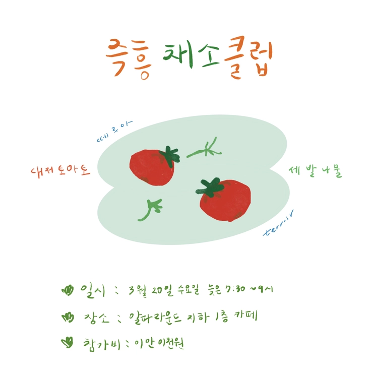 채소를 길러내는 땅과 바람, 다가오는 따뜻한 봄을 상상하는 3월의 즉흥채소클럽에 벗 여러분을 초대합니다 🍅🌿
