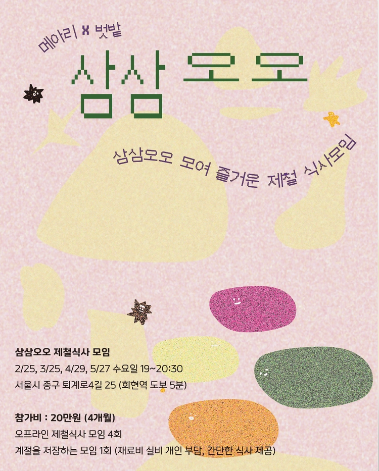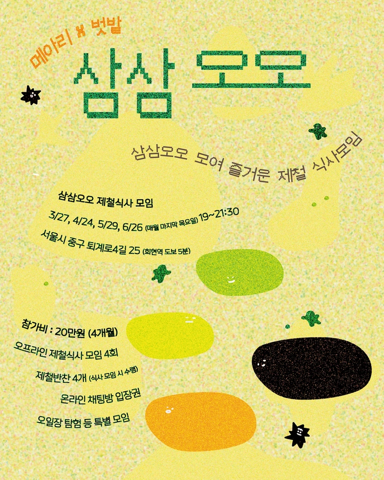 - 한 달에 한 번, 삼삼오오 모여 즐거운 제철 식사를 나눕니다. (매월 마지막 목요일)
