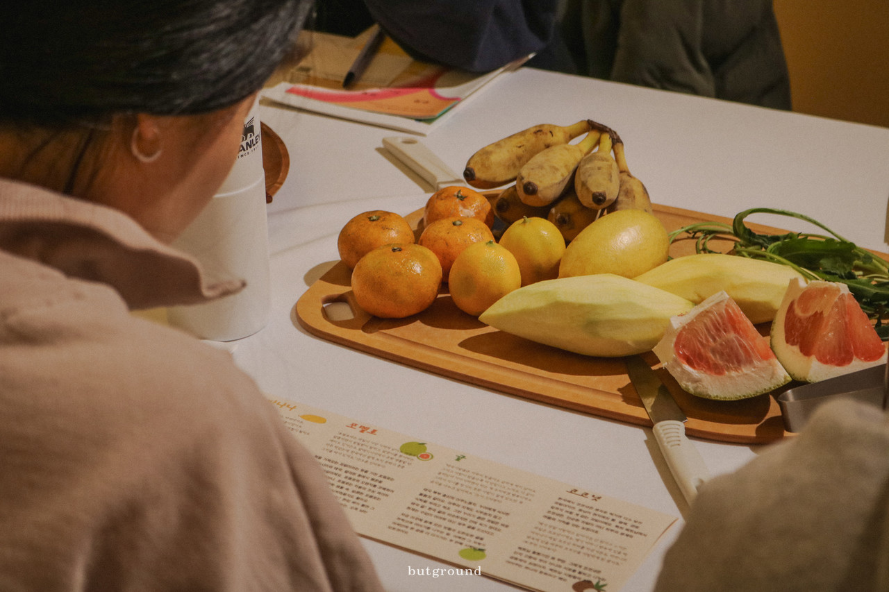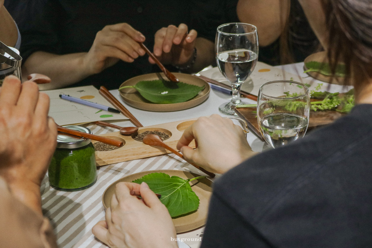 레인보우큐브에서 열린 <공동의 부엌 : 깻잎> 전시 연계 프로그램을 기획했습니다. 깻잎은 한국인의 식탁에서 흔히 접하는 재료이지만, 많은 사람들이 깻잎과 들깨, 들기름이 모두 한 식물에서 비롯되었다는 사실을 잘 알지 못합니다. 본 워크숍은 깻잎이라는 친숙한 식재료를 매개로, 깻잎-꽃-들깨로 연결되는 자연의 순환 구조를 감각적으로 탐색하고, 개인의 기억과 공동의 경험을 나누는 장을 마련하고자 했습니다. 참여자는 깻잎의 생애주기를 맛보고, 만지고, 향으로 경험하며, 함께 요리하고 기록하는 과정을 통해 일상의 재료가 지닌 의미와 풍요로움을 재발견합니다.