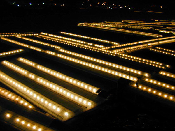 전날 미리 태룡리에 들러 농부님께 인사를 드리고 숙소로 돌아가는 길, 빛으로 반짝이는 가로등, 아니 비닐하우스를 맞이합니다. 깻잎 하우스입니다. 밀양 단장면 대부분의 비닐하우스에서는 깻잎이 자란다고 합니다. 해가 짧아지면 깻잎이 금세 꽃을 맺어서 밤에 불을 켜 계절감을 잊게 하는 것이지요.