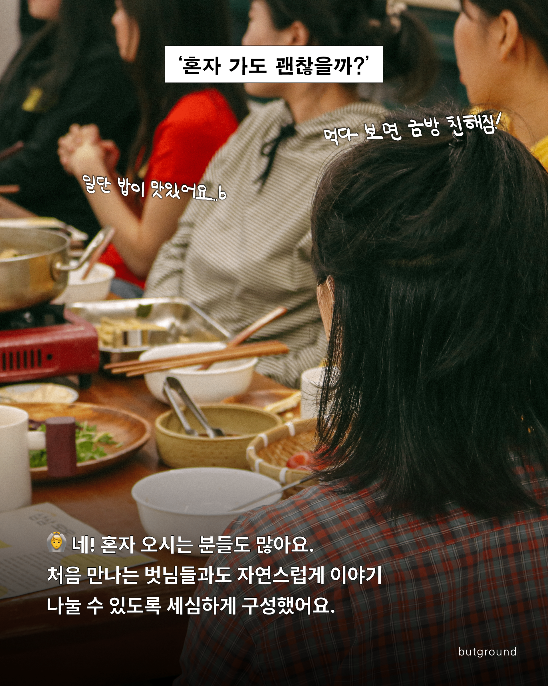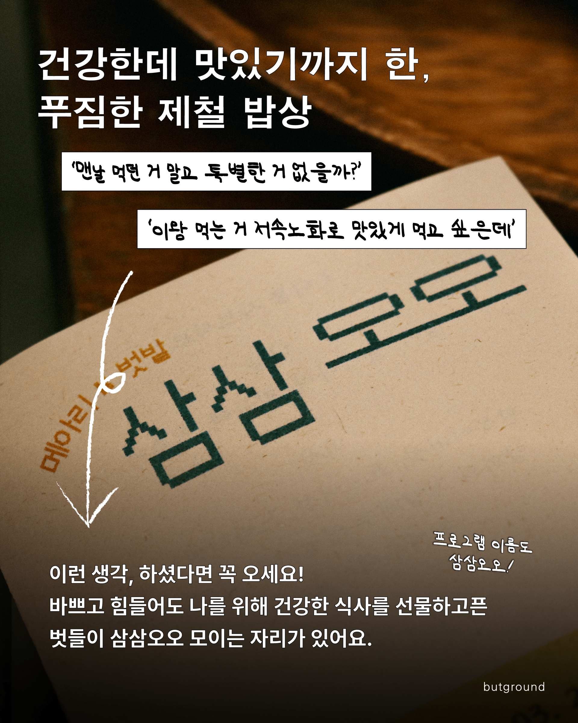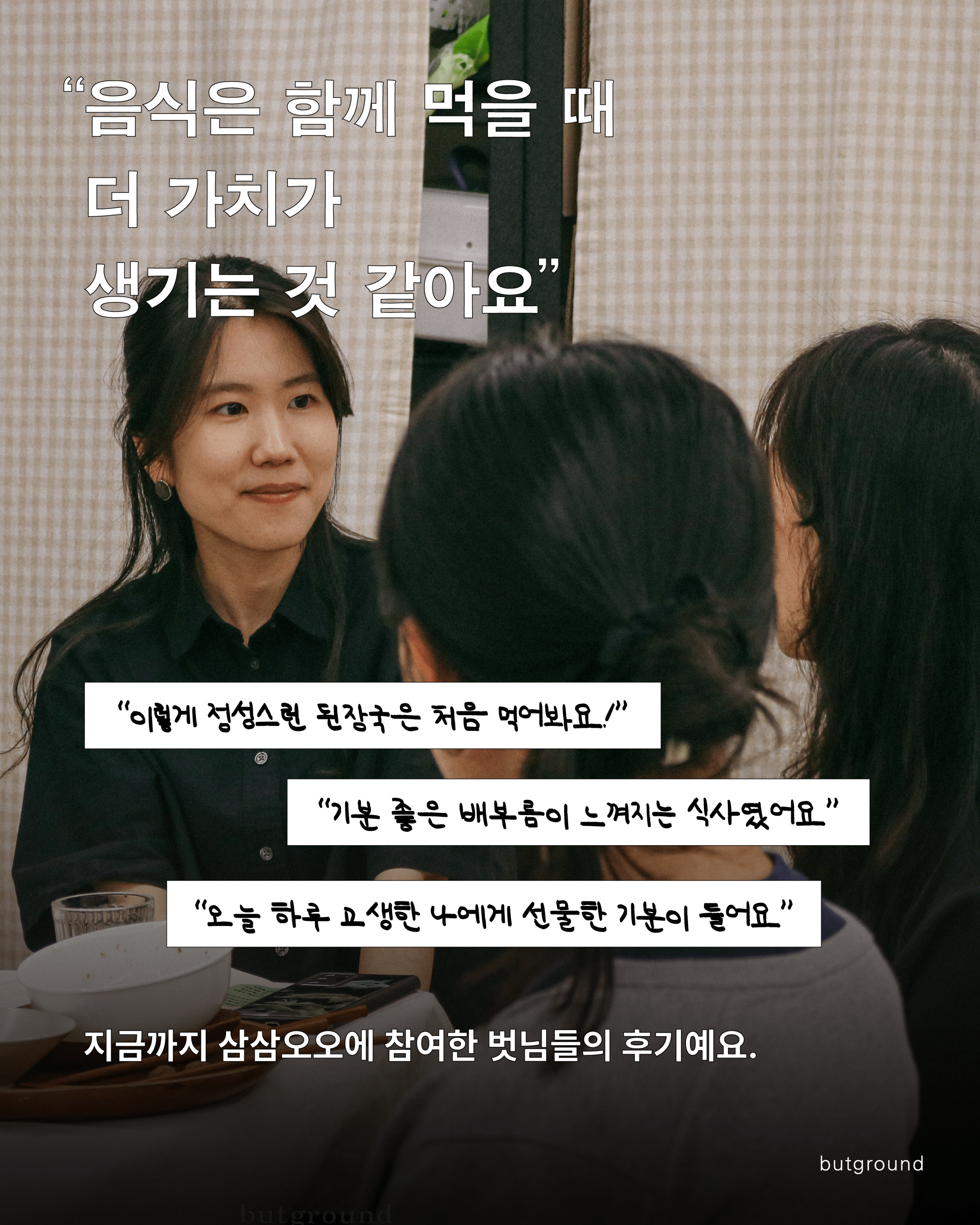 함께하는 식사의 기쁨을 더하는 <삼삼오오> 식사모임을 꾸리게 되었습니다.